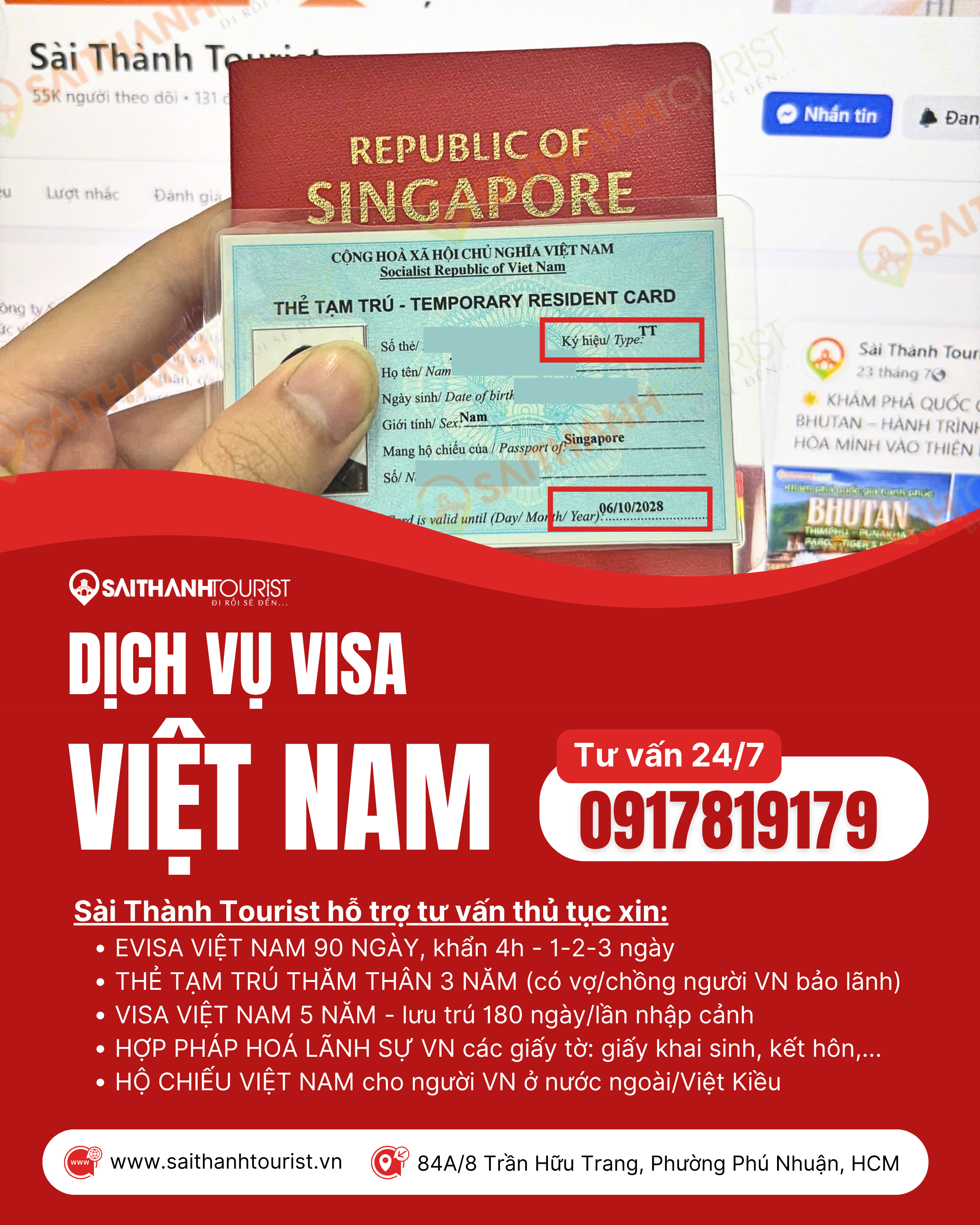 Nếu bạn chưa quen quy trình hoặc không có thời gian chuẩn bị hồ sơ, SÀI THÀNH TOURIST nhận hỗ trợ trọn gói thủ tục thẻ tạm trú TT bao gồm: