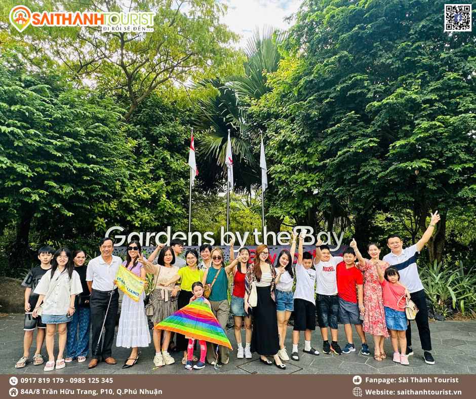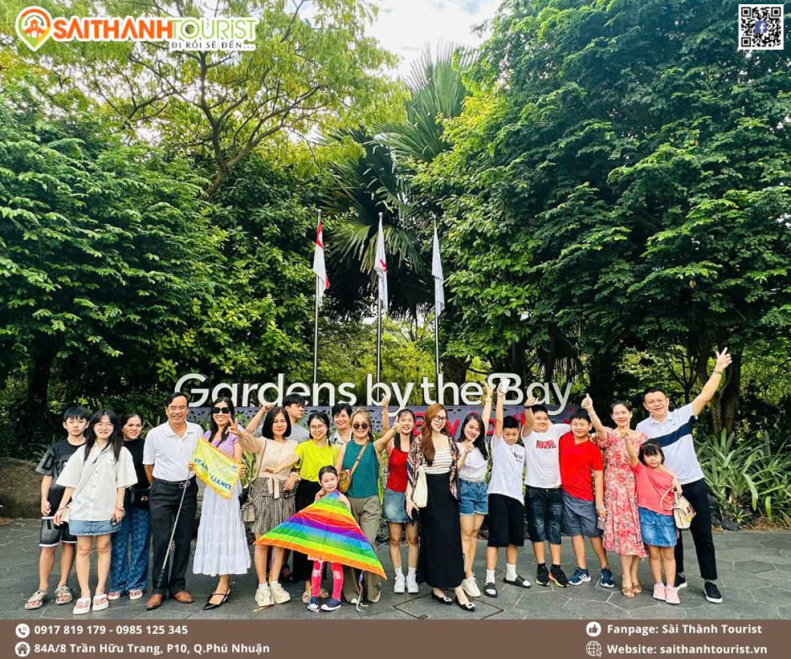 - Kỳ quan Gardens by the Bay (Những khu vườn bên Vịnh) đây là khu vườn nhân tạo rộng hơn 100ha, có hơn 250.000 loài thực vật quý hiếm, với các Siêu cây khổng lồ lấy năng lượng mặt trời vào ban ngày và tỏa sáng vào ban đêm. Từ đây Quý khách có thể chụp hình toàn cảnh “Chiếc du thuyền” nằm ở độ cao 200m trên đỉnh của ba tòa nhà khách sạn Marina Bay Sands.