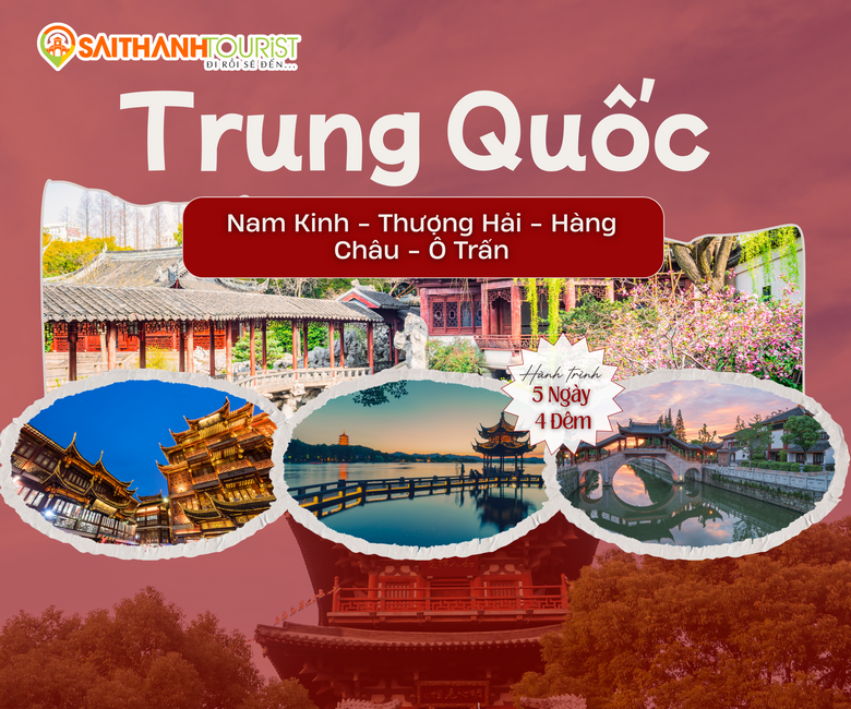 Hành trình: TP.HCM – Nam Kinh – Hàng Châu – Ô Trấn – Thượng Hải Thời gian: 5 Ngày 4 Đêm Hàng không: China Eastern Airlines (MU - Bay thẳng, giờ đẹp) Tiêu chuẩn: NO SHOPPING - KHÁCH SẠN 4-5 SAO - ĂN UỐNG SANG TRỌNG